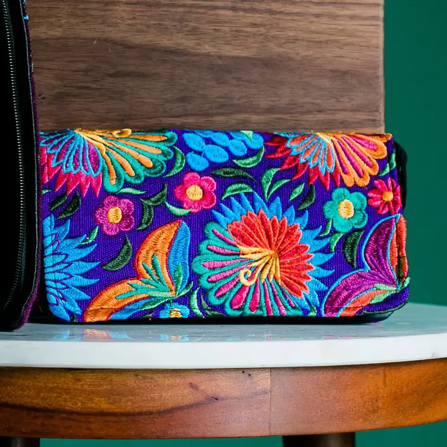 This embroidered clutch will surely make heads turn! Made with embroidered cotton and vegan leather, the Floral Clutch measures 8 3/4" L x 4.5" H x 1.5" W and features a 6" cotton wrist strap for easy carrying. Inside, it opens to reveal three slots, including a four-card holder and a middle zipper pouch, combining style with practical organization. By choosing this clutch, you support artisans in Guatemala and join Grace in Motion’s mission to empower women through ethically crafted products. Shop with purpose and make a lasting impact locally and globally.