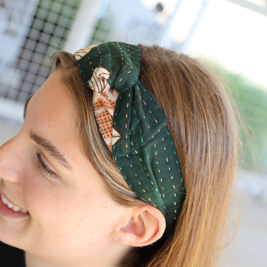 Wrap your hair in style with our Sari Hair Wrap. Made from recycled saris and hand-crafted, each one is unique with its own vibrant color and pattern. Keep your hair out of your face while looking fashionable. A simple yet gorgeous option for any occasion.