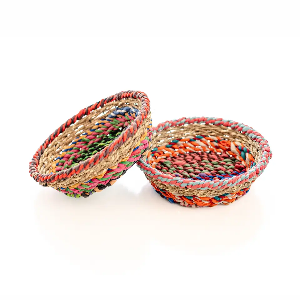 Bright, beautiful and handy, this perfectly sized wrapped wire basket keeps things tidy while adding a touch of artisanal charm to any room. Our Sari & Jute wrapped bowl is hand woven from natural fibers and recycled fabrics over a sturdy heavy wire frame, combining sustainability with style. Each piece is crafted by skilled women artisans supported through fair wages, safe working environments, and ongoing training to enhance their craft and livelihoods. By choosing this thoughtfully made bowl, you support Grace in Motion’s mission to empower women and create lasting change locally and globally. Elevate your home organization with a product that reflects purpose and ethical craftsmanship.